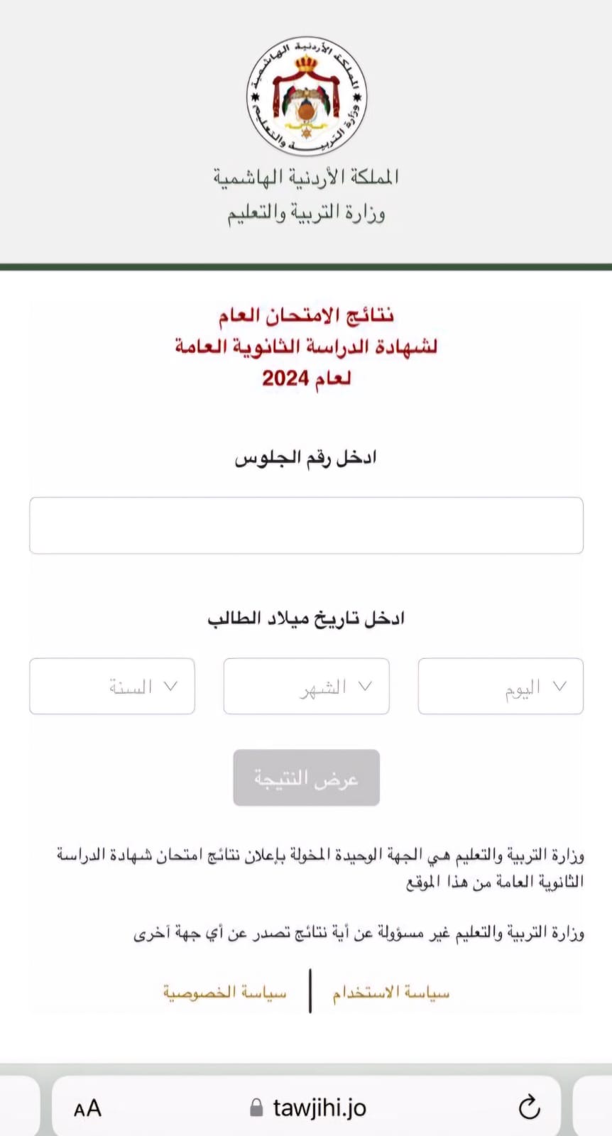 فعّلت وزارة التربية والتعليم رابط نتائج امتحان الثانوية العامة.www.tawjihi.jo |