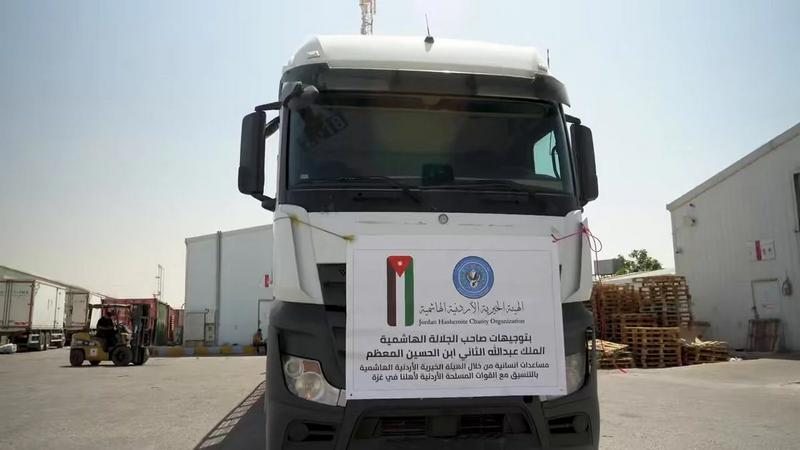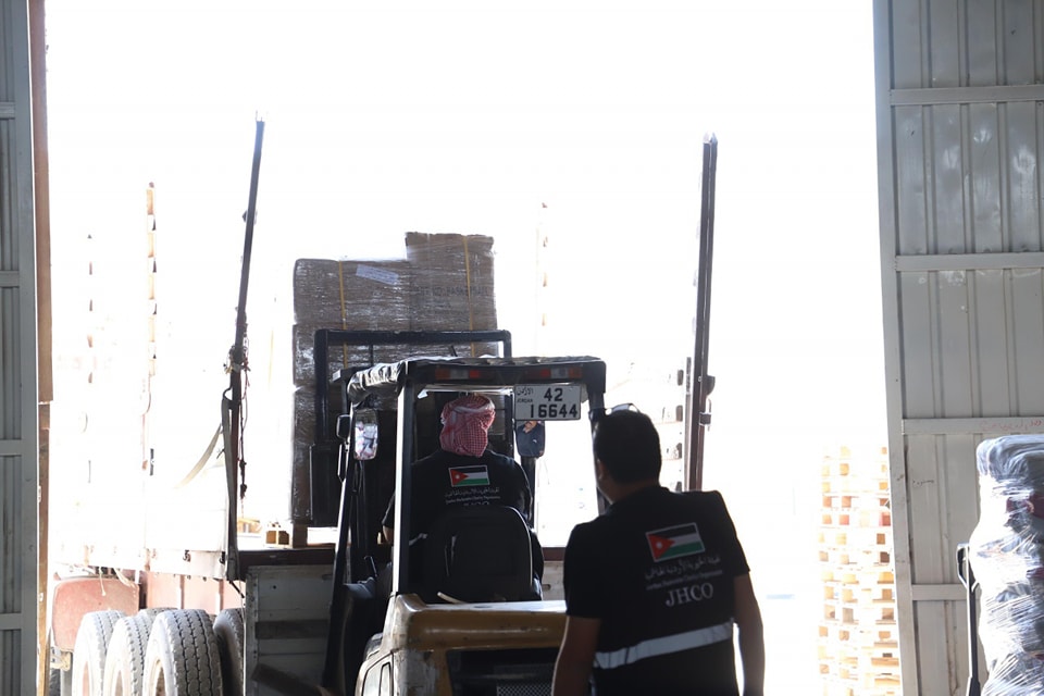 | 50 شاحنة من المساعدات الانسانية الاغاثية تعبر لأهلنا في غزة من الأردن اليوم |