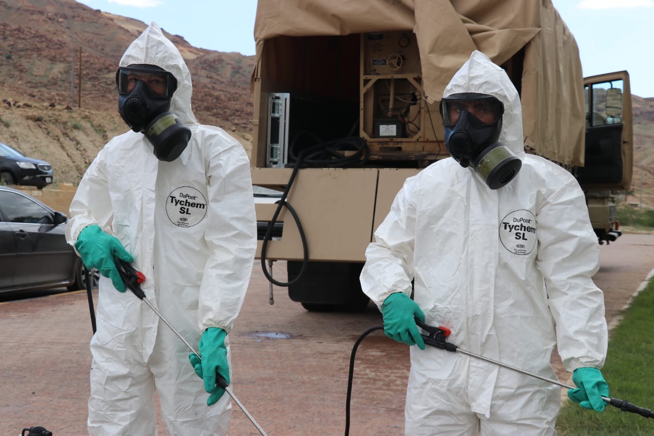 | الجيش يعقّم موقع اصابات كورونا في إربد |