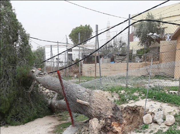 | اقتلاع أشجار وانقطاع اسلاك كهربائية خلال المنخفض - تفاصيل |