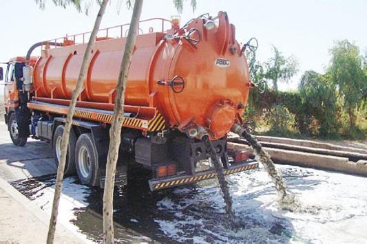 | ضبط صهريج للمياه العادمة يفرغ حمولته على طريق المطار |