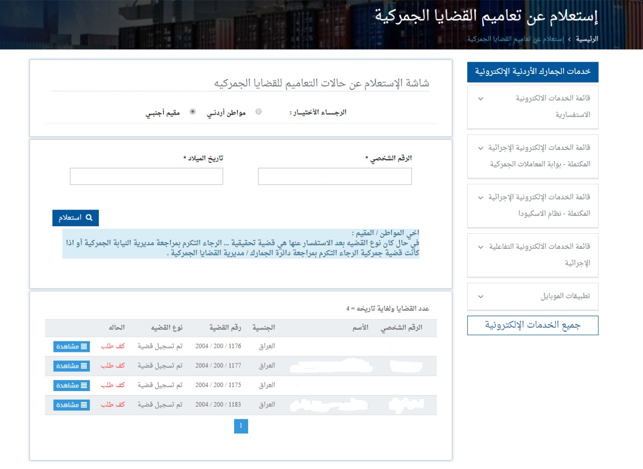 أطلقت الجمارك الاردنية خدمة الاستعلام عن منع السفر على الموقع الالكتروني للدائرة للاستعلام عن حالات القضايا الجمركية، حيث أصبح بامكان المواطنين والمقيمين من الاطلاع على... |