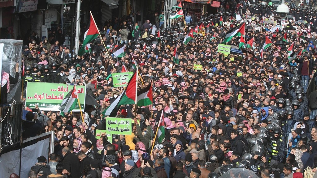 تصوير أحمد حمدان - نظم التحالف الوطني لمجابهة صفقة القرن اعتصاماً أمام السفارة الأميركية في عمّان رفضاً للخطة الاميركية للسلام وسياسية الرئيس الأميركي دونالد ترامب تجاه... |