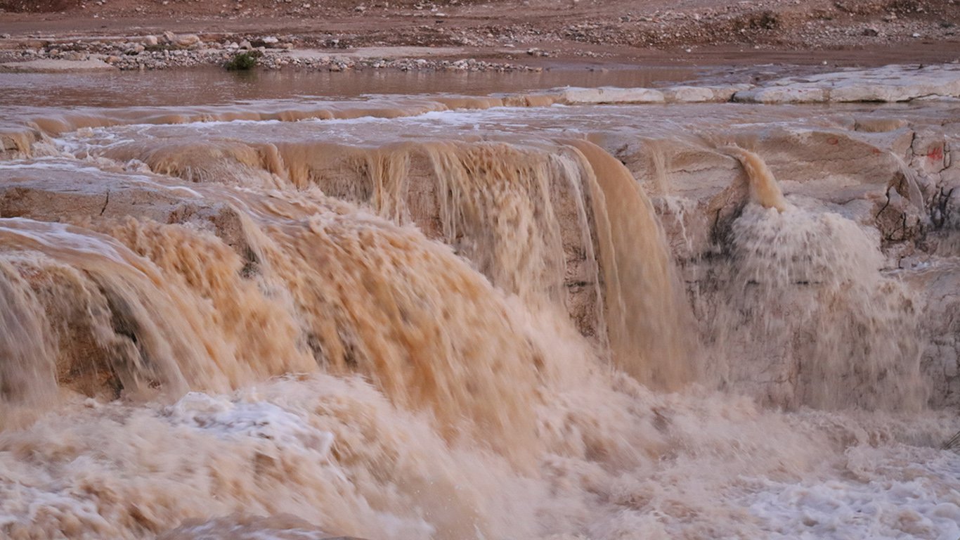 | الصور الأولى لفيضان نهر الأردن |