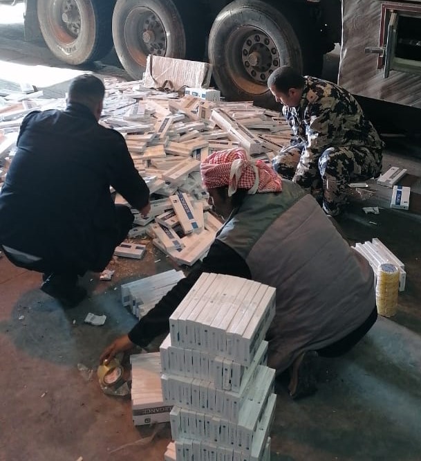 | ضبط 3930 كروز دخان مهرب في مركز جابر |