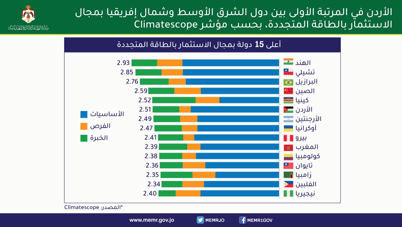 | الأردن السادس عالمياً باستثمارات الطاقة المتجددة |