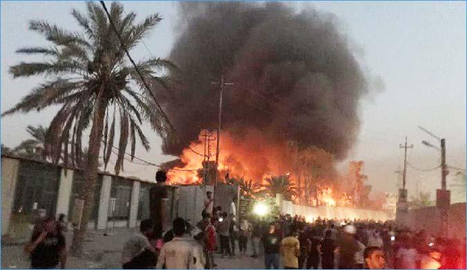 | متظاهرون يحرقون القنصلية الإيرانية في النجف |