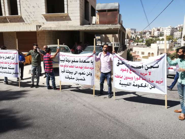 | اعتصام لأصحاب منشآت سياحية أمام السفارة الليبية |
