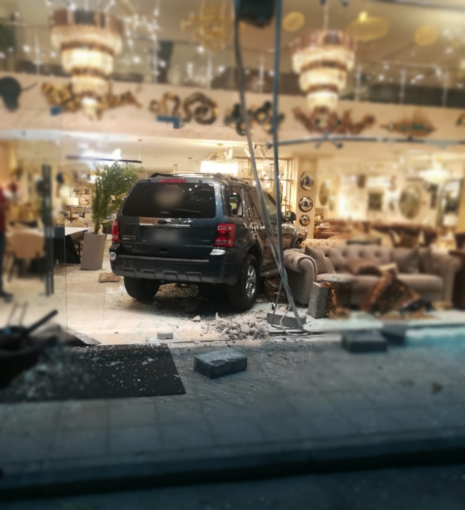 | مركبة تقتحم معرض اثاث في خلدا |