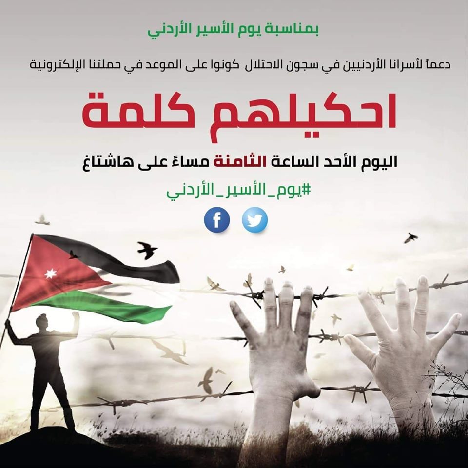 دعا نشطاء أردنيّون للمشاركة في حملة التغريد الإلكترونية تحت عنوان ( احكيلهم كلمة ) التي يطلقونها في تمام الساعة الثامنة من مساء الأحد بمناسبة يوم الأسير الأردني عبر... |