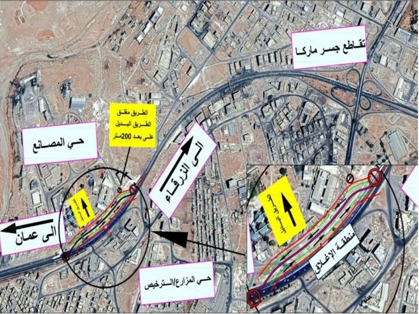 | بدء العمل بتحويلات اوتستراد عمان - الزرقاء |