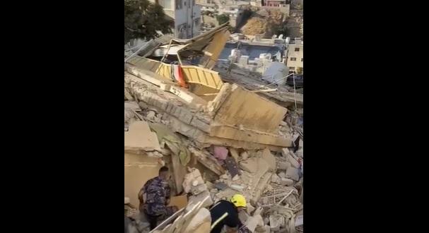 | الأمن العام : فرق الإنقاذ تصل الآن إلى ثلاث جثث تحت الأنقاض والعمل جارٍ على اخراجها واخلائها |