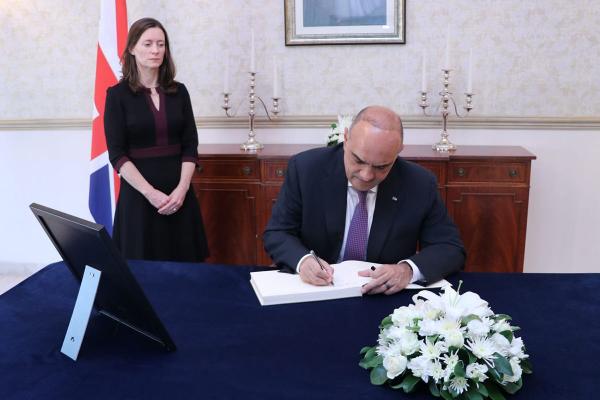 | الخصاونة يزور السفارة البريطانية معزيا بوفاة الملكة اليزابيث |