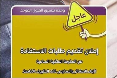| بدء تقديم طلبات الاستفادة من مكرمة أبناء العشائر للقبول في الجامعات - رابط |