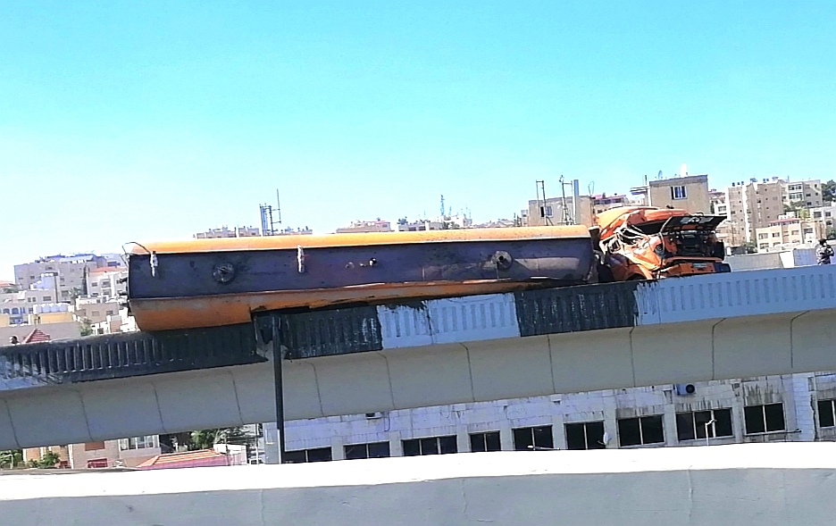 | تدهور صهريج نضح على جسر المدينة الرياضية |
