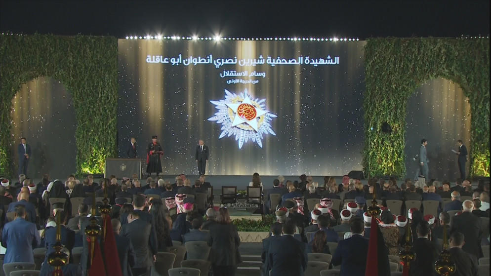 أنعم جلالة الملك عبدالله الثاني، الأربعاء، على الشهيدة الصحفية شيرين أبو عاقلة بوسام الاستقلال من الدرجة الأولى، ضمن احتفال وطني بعيد الاستقلال 76 في قصر الحسينية.وجاء... |