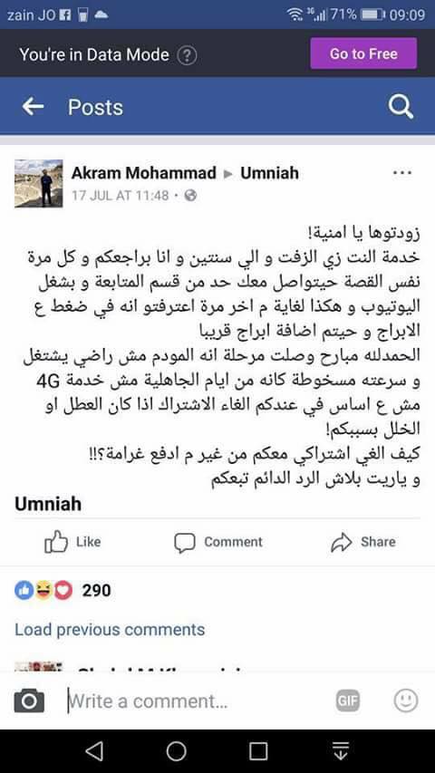 رصد - كتب اكرم محمد احد مستخدمي خدمة الانترنت من شركة امنية منشور على صفحة شركة امنية على فيسبوك. وختم اكرم منشوره بأنه يريد معرفة الطريقة لالغاء اشتراكه مع شركة امنية... |