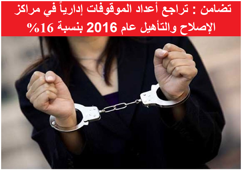 1721 إمرأة أوقفت إدارياً عام 2016 مقابل 2052 إمرأة أوقفت عام 20153073 نزيلة في مراكز الإصلاح والتأهيل / النساء عام 2016 منهن 56% أوقفن إدارياًتضامن : تراجع أعداد الموقوفات... |
