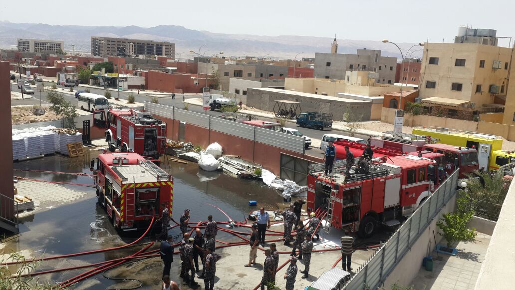 | الدفاع المدني يتعامل مع حريق مستودع في محافظة العقبة |