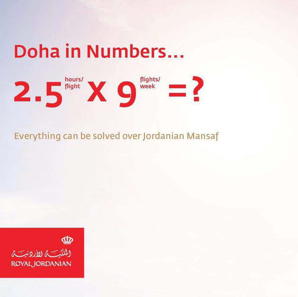 نشرت الخطوط الجوية الملكية الاردنية إعلاناً مثيراً وذكياً، حول رحلاتها إلى العاصمة القطرية الدوحة، بعد قرار حظر الطيران الذي أصدرته كل من السعودية والامارات والبحرين... |