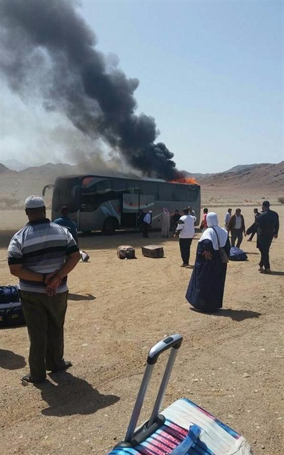 | حريق يلتهم حافلة معتمرين أردنيين - صور |