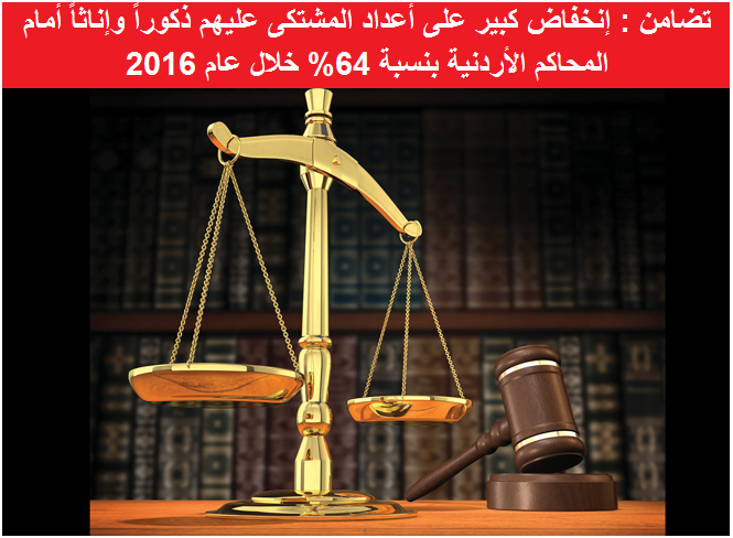 267 ألف مشتكى عليه منهم 37 ألف مشتكى عليها أمام المحاكم الأردنية عام 2016ارتفاع كبير في أعداد المشتكى عليهن في القضايا الحقوقية وصل الى 24 ألف عام 2016إنخفاض كبير في أعداد... |