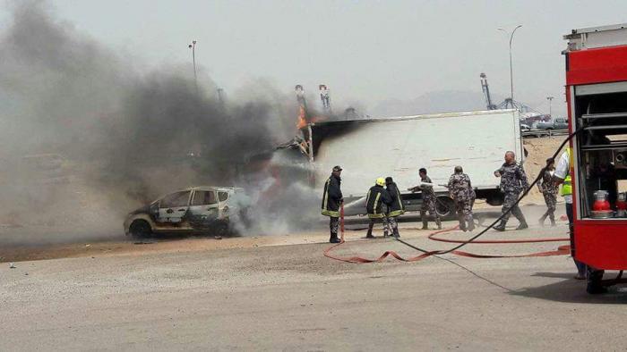 | احتراق مركبتين في العقبة |