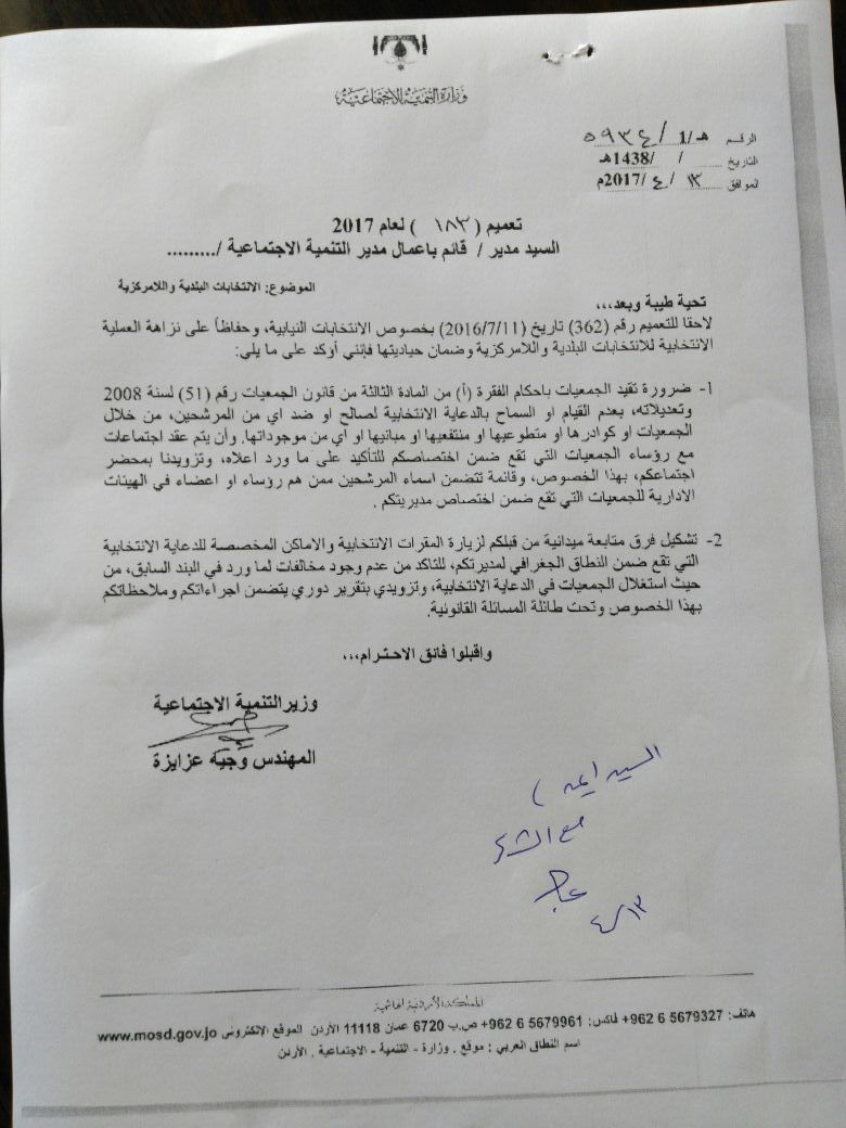 اكد وزير التنمية الاجتماعية المهندس وجيه عزايزة ضرورة تقيد الجمعيات باحكام الفقرة (أ) من قانون الجمعيات رقم 51 لسنة 2008 وتعديلاته، بعدم القيام او السماح بالدعاية... |