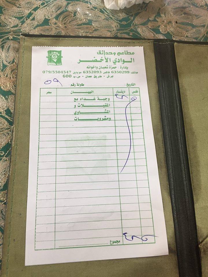 | جرش : (الوادي الاخضر) يقدم فواتيره بدون رقم ضريبي |