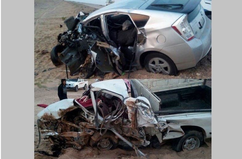 | بالصور: وفاة واصابة اثر حادث تصادم على الطريق الصحراوي |