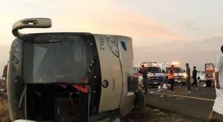 | وفاة واصابات في انقلاب حافلة معتمرين اردنيين في السعودية |