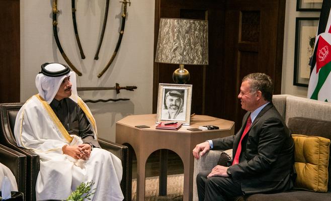 استقبل جلالة الملك عبدالله الثاني، اليوم الأربعاء، وزير الخارجية القطري، محمد بن عبدالرحمن آل ثاني، وفق ما نشر الديوان الملكي في تويتر. |