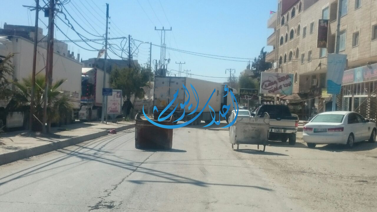 | اغلاق طريق الرمثا بالشاحنات وحاويات النفايات |