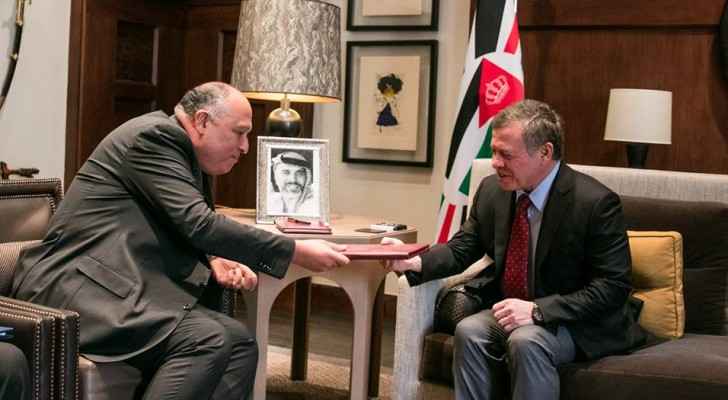 التقى جلالة الملك عبدالله الثاني وزير الخارجية المصري، سامح شكري، ويتسلم رسالة من الرئيس عبدالفتاح السيسي. |