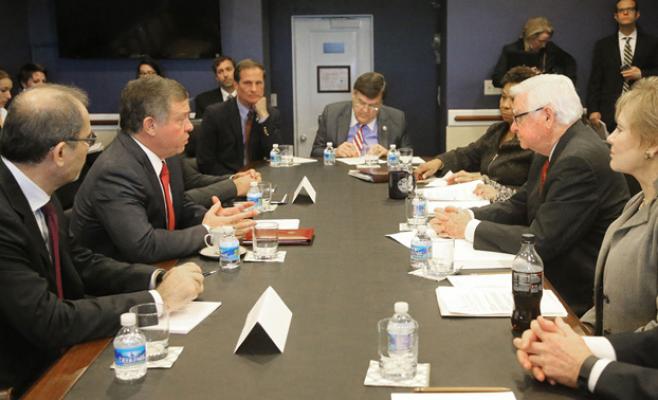حل الدولتين يحقق العدالة والحرية - تثبيت الهدنة بسورية ومحاربة الإرهاب- وحدة العراق مصلحة عليا للأردن - عدم اتخاذ إجراءات تقوض استئناف العملية السلمية- حلول سياسية لصد... |