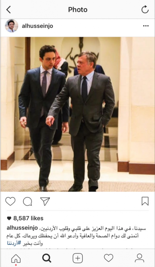 نشر سمو الأمير الحسين بن عبدالله الثاني٬ ولي العهد٬ عبر حسابه على موقع التواصل الاجتماعي 'أنستجرام' مهنئاً جلالة الملك بعيد ميلاده: سيدنا٬ في هذا اليوم العزيز على... |