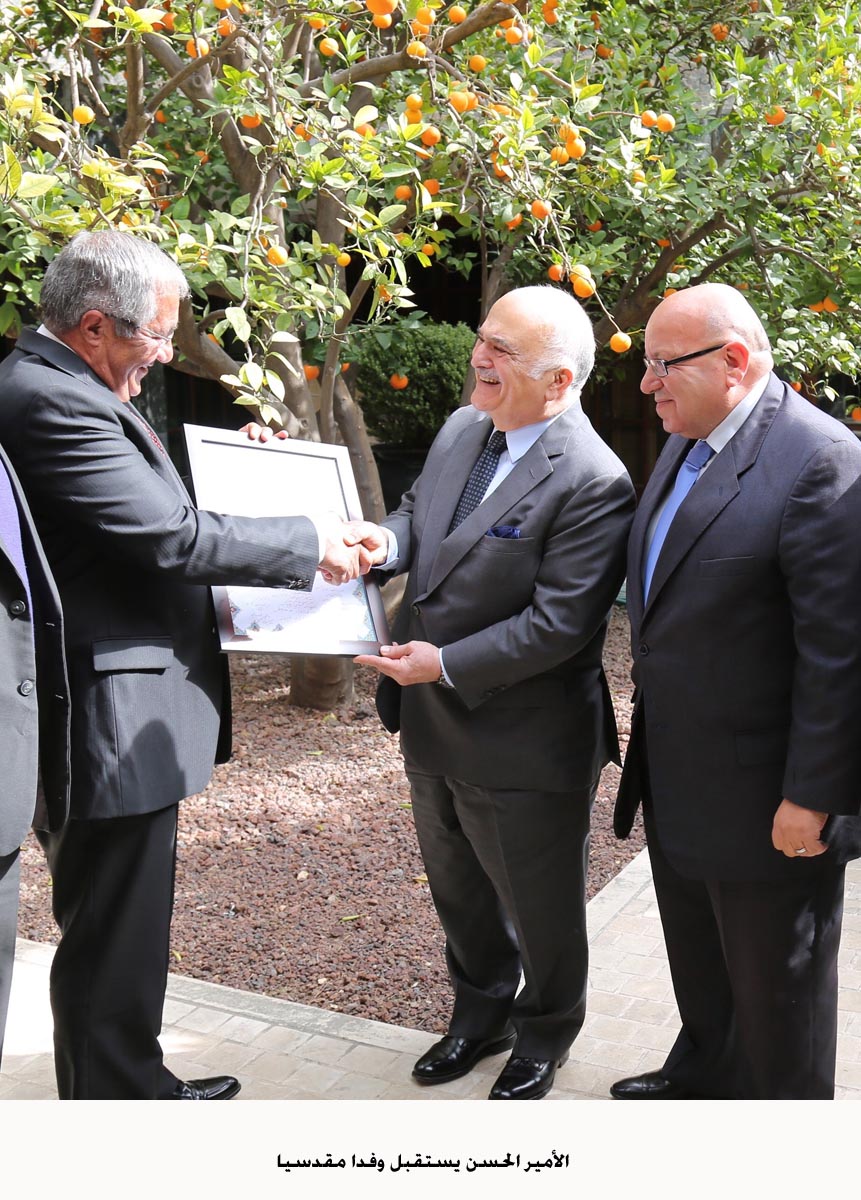 | الأمير الحسن يتسلم رسالة موشحة بتوقيع 115 عائلة مقدسية |