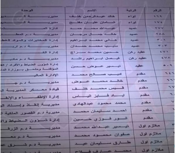 | احالات الى التقاعد في الدفاع المدني - أسماء |
