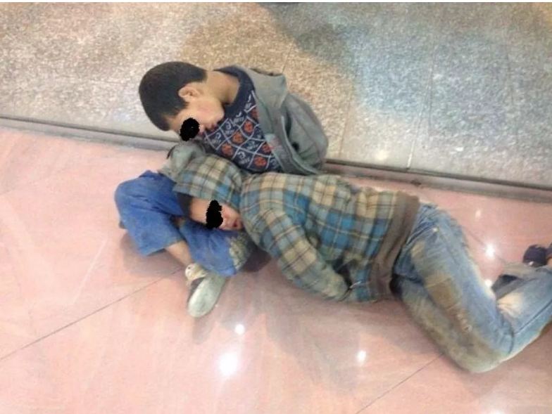 | طفلان ينامان امام بوابة مستشفى الرمثا طيلة الليل |