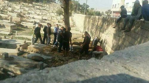 | بروز عظام متوفى في مقبرة حي معصوم |