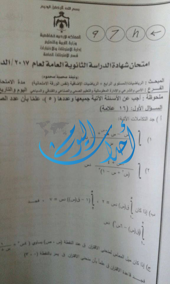 خاص - حصلت احداث اليوم على ورقة يرجح انها مسربة من امتحان مادة الرياضيات المستوى الرابع للافرع الادبي والادارة المعلوماتية والتعليم الصحي والصناعي والفندقي والسياحي الذي... |