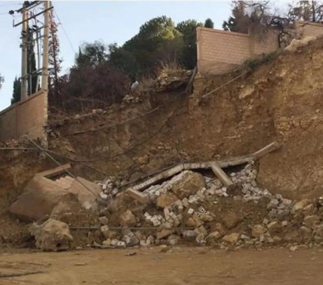 | انهيار اجزاء من الجدار الاستنادي لمستشفى الامير زيد |