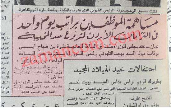 | 1965 - فرض التبرع براتب يوم لكل موظف يزيد راتبه عن 30 دينار !! |