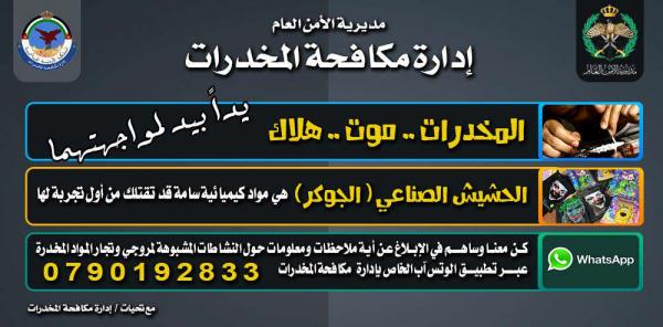 وجهت ادارة مكافحة المخدرات وعبر صفحتها الرسمية على الفيس بوك المواطنين بسرعة الابلاغ عن اي نشاطات لمهربي المواد المخدرة او مروجيها او متعاطيها من خلال الابلاغ... |