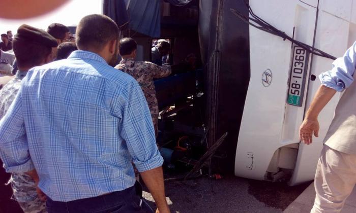 | وفيات و اصابات بتدهور باص ركاب على طريق اربد المفرق- صور |