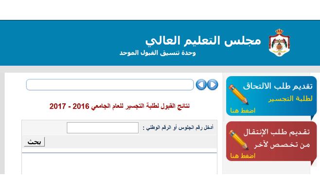 أعلن مجلس التعليم العالي / وحدة تنسيق القبول الموحد، نتائج القبول لطلبة التجسير للعام الجامعي 2016 / 2017.للحصول على النتيجة... |