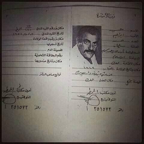 | صورة تاريخية لدفتر عائلة الممثل الأردني "مرزوق" |