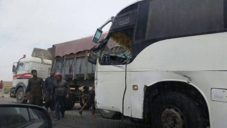 | الزرقاء : اصابة 20 شخصا اثر تصادم شاحنة وباص طريق الاوتستراد |