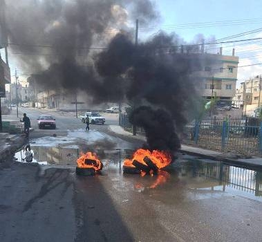 | اغلاق شارع في الهاشمية بالاطارات المشتعلة |