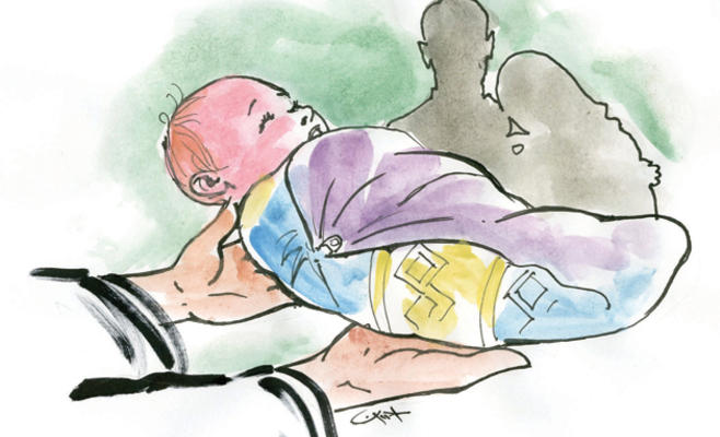 | سيدة تلقي رضيعا أمام مركز الحسين الثقافي بعمّان وتلوذ بالفرار |